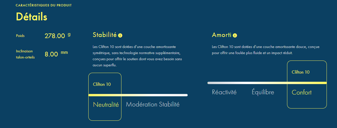 Légèreté et moelleux pour courir au quotidien. Chaussure de running fiable pensée pour vos kilomètres journaliers, la Clifton est notre modèle avec amorti phare depuis 10 ans. Ouvrant la voie à une nouvelle ère en matière de performance tout en moelleux, cette version revisitée offre une expérience sous le pied redynamisée avec 3 mm supplémentaires de drop du talon aux orteils et un amorti renforcé sous le talon pour plus de confort. Sans se défaire de l’amorti ultraléger qui a fait la réputation de la Clifton, cette nouvelle version propose un ajustement affiné, avec une tige en jacquard respirant et une double boucle de laçage pour minimiser le déplacement de la languette.