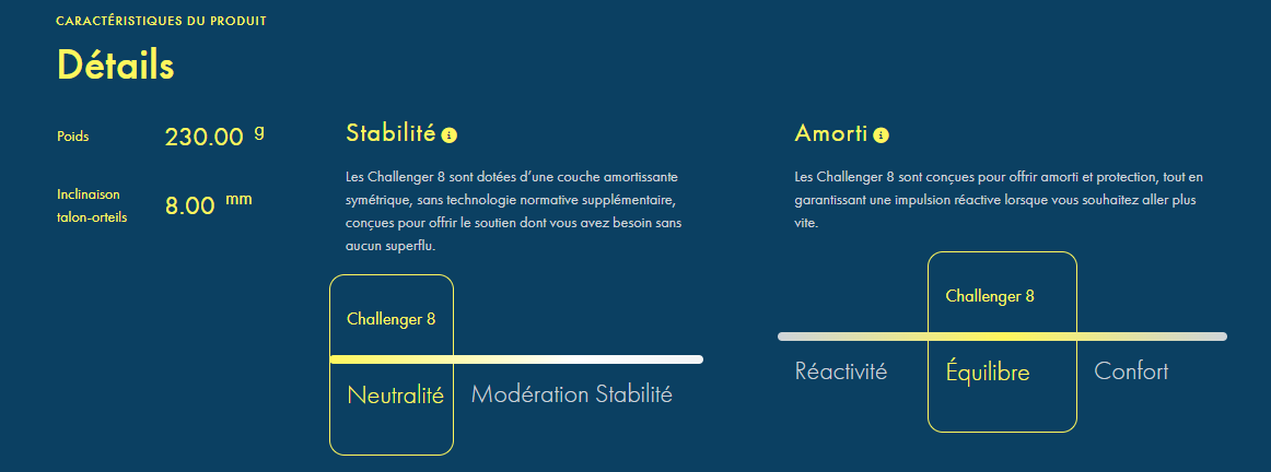 Approuvée en ville. Testée sur les sentiers. Élaborée au croisement du running sur route et du trail, la Challenger 8 offre un amorti tout en douceur et l’adhérence dont vous avez besoin pour affronter divers terrains en toute confiance. Véritable baroudeuse appréciée pour sa foulée ultra-amortie sur les graviers, nous lui avons ajouté plus de mousse sous le pied et avons amélioré son ajustement. En plus de sa tige en mesh minimaliste, son bracelet moelleux et son embout en caoutchouc résistant, nous avons repensé l’orientation de ses crampons multidirectionnels pour garantir la foulée la plus fluide sur tous les terrains.