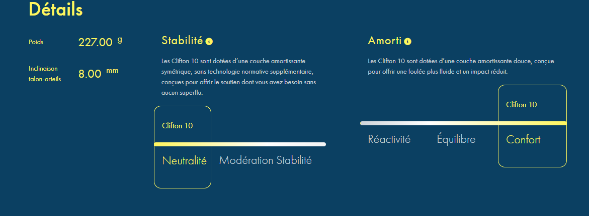 Légèreté et moelleux pour courir au quotidien. Chaussure de running fiable pensée pour vos kilomètres journaliers, la Clifton est notre modèle avec amorti phare depuis 10 ans. Ouvrant la voie à une nouvelle ère en matière de performance tout en moelleux, cette version revisitée offre une expérience sous le pied redynamisée avec 3 mm supplémentaires de drop du talon aux orteils et un amorti renforcé sous le talon pour plus de confort. Sans se défaire de l’amorti ultraléger qui a fait la réputation de la Clifton, cette nouvelle version propose un ajustement affiné, avec une tige en jacquard respirant et une double boucle de laçage pour minimiser le déplacement de la languette.